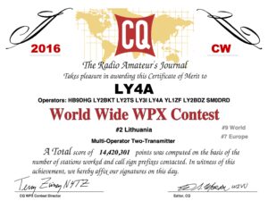 2016 | LY4A – CQ WW WPX CW