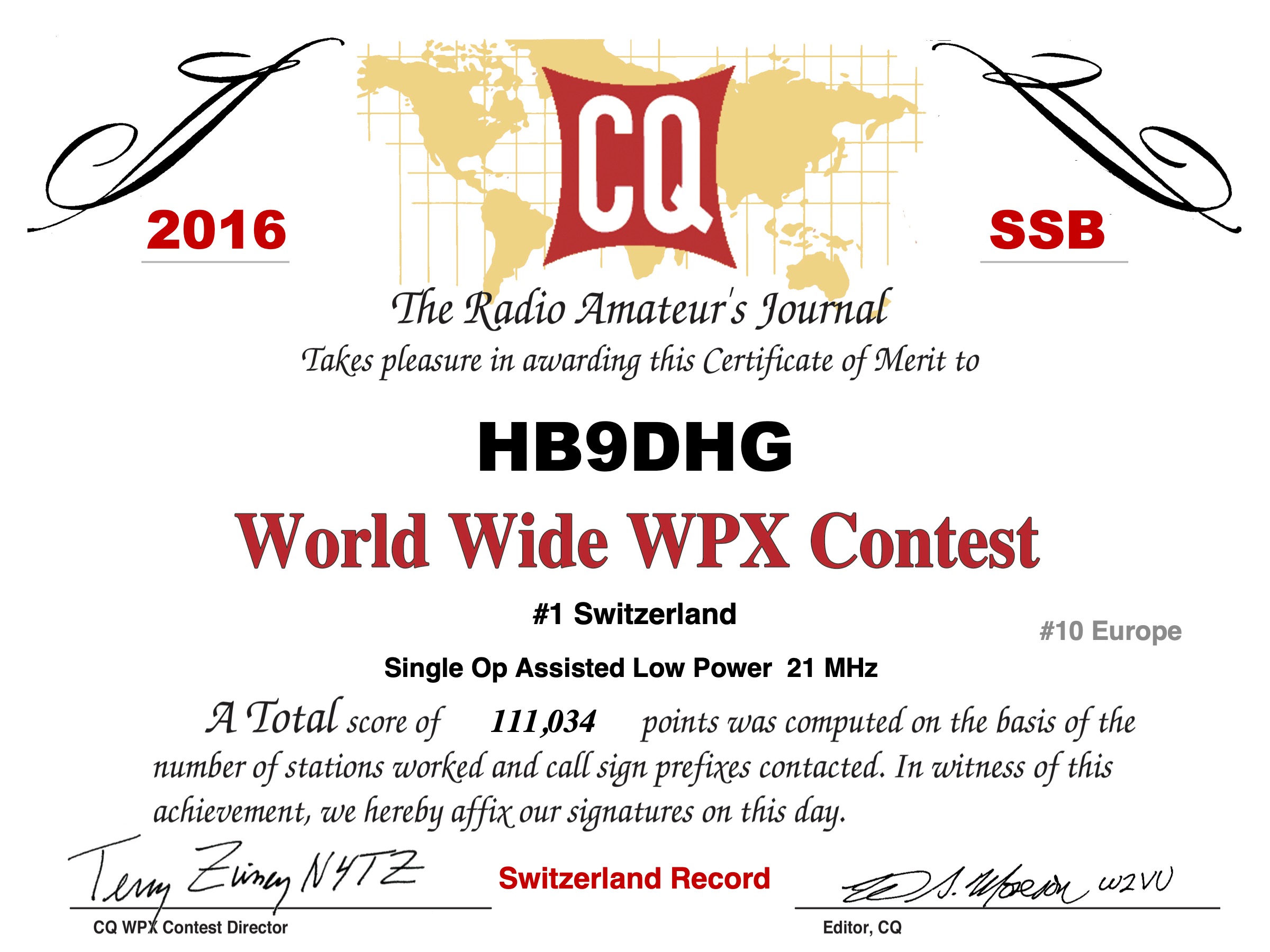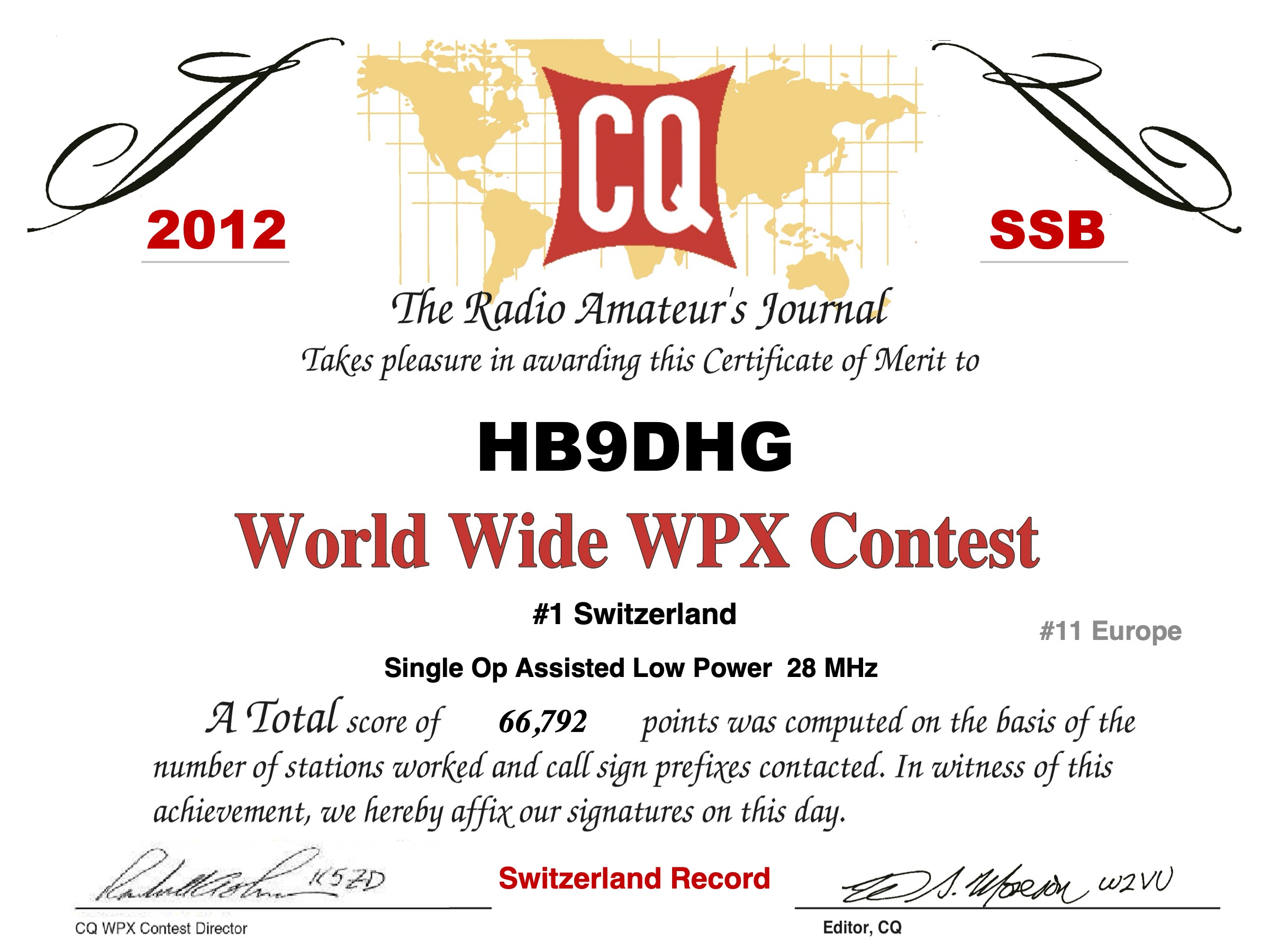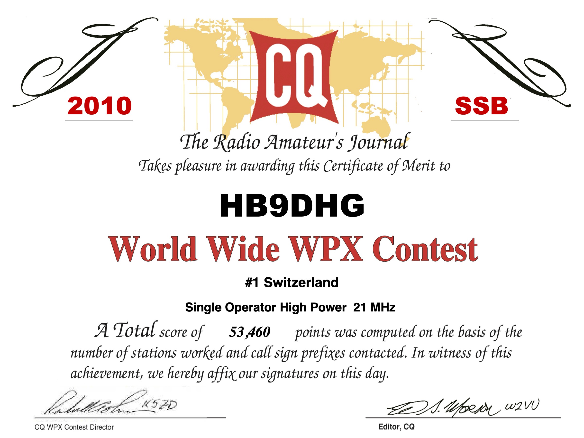 The WPX Contest is based on an award offered by CQ Magazine for working all prefixes. Held on the last weekend of March (SSB) and May (CW), the contest draws thousands of entries from around the world. All WPX Contest entries for CW/SSB since 1973 have been entered into a searchable database. Online certificates are available for 2010 and later. Log checking reports are provided online for all entrants. Notification is by email.